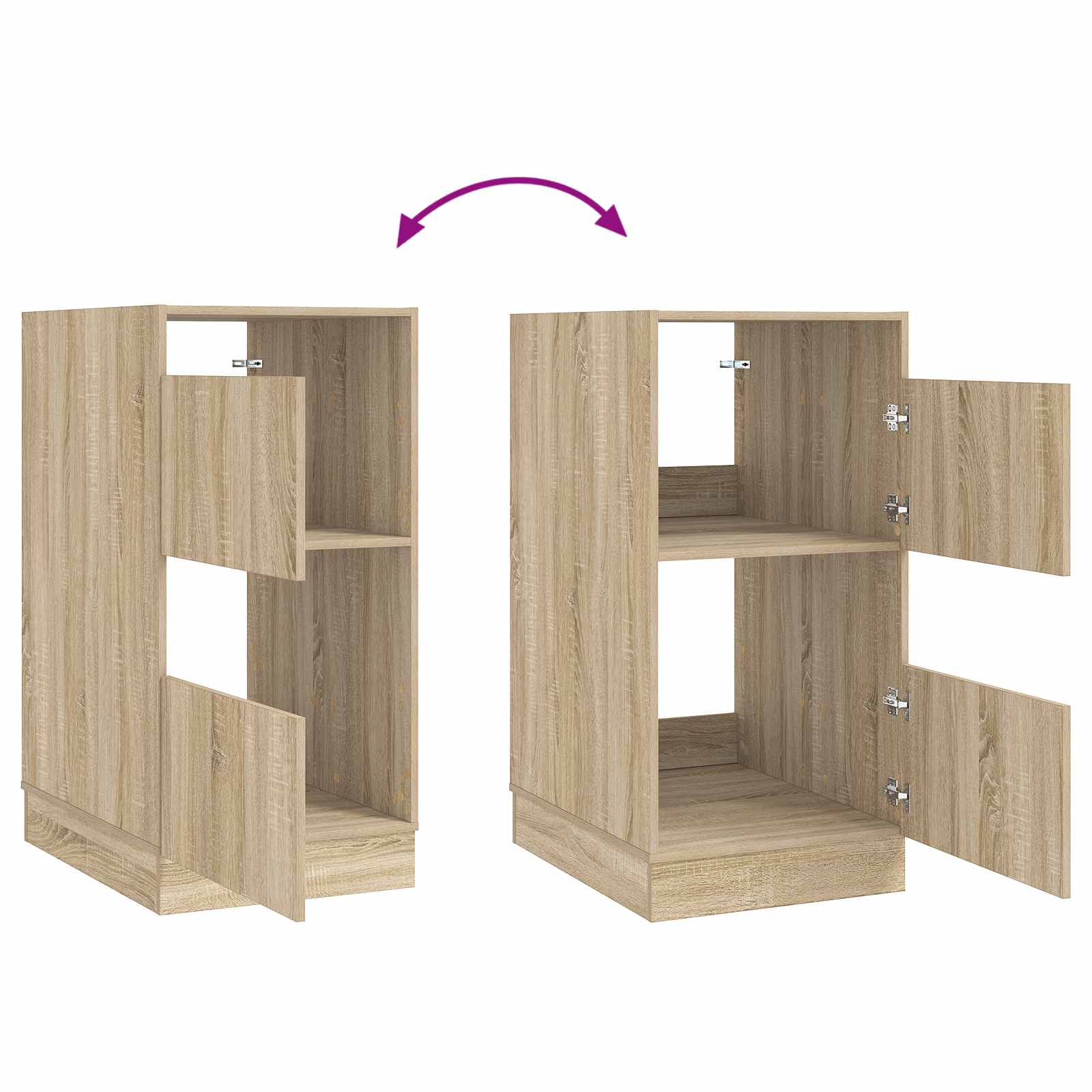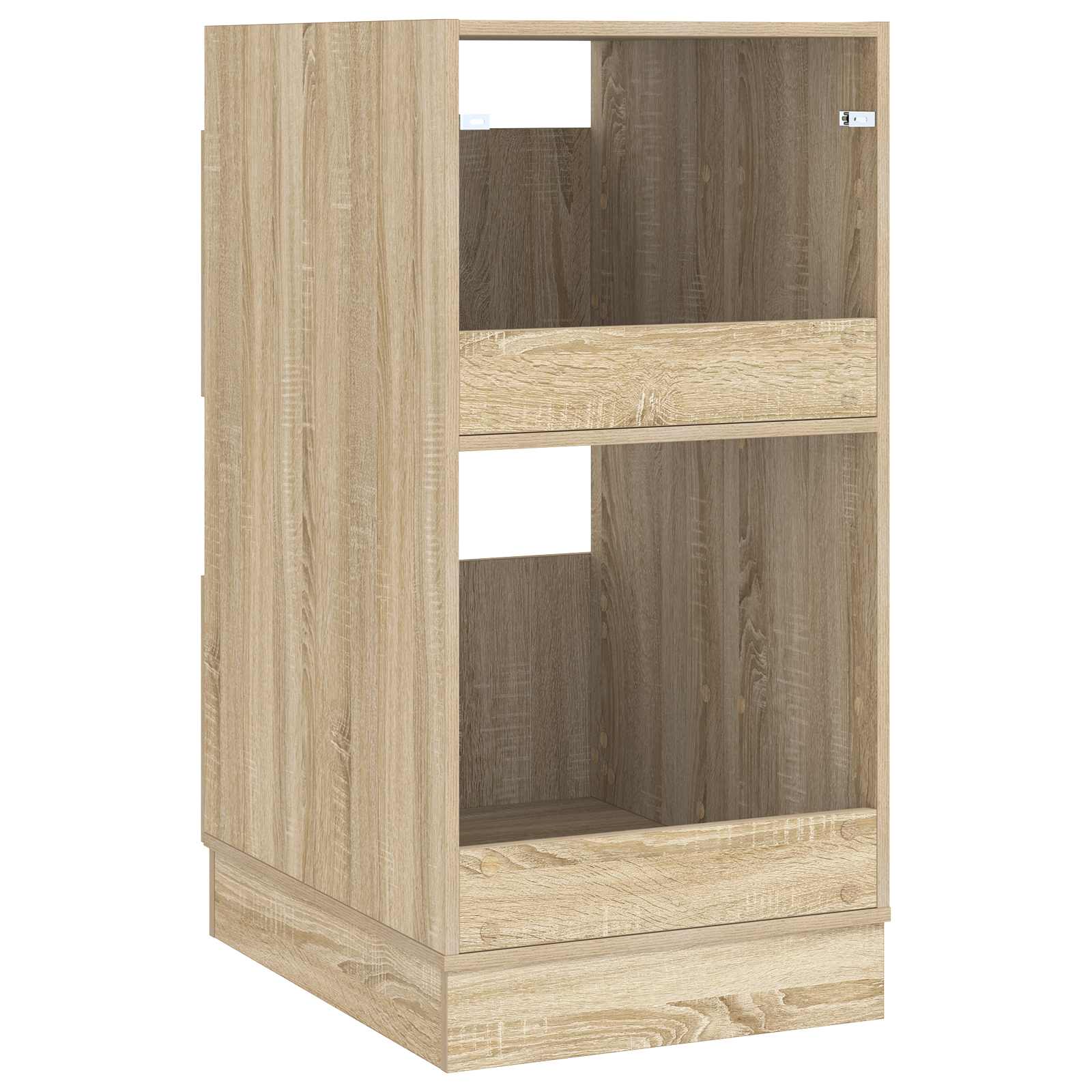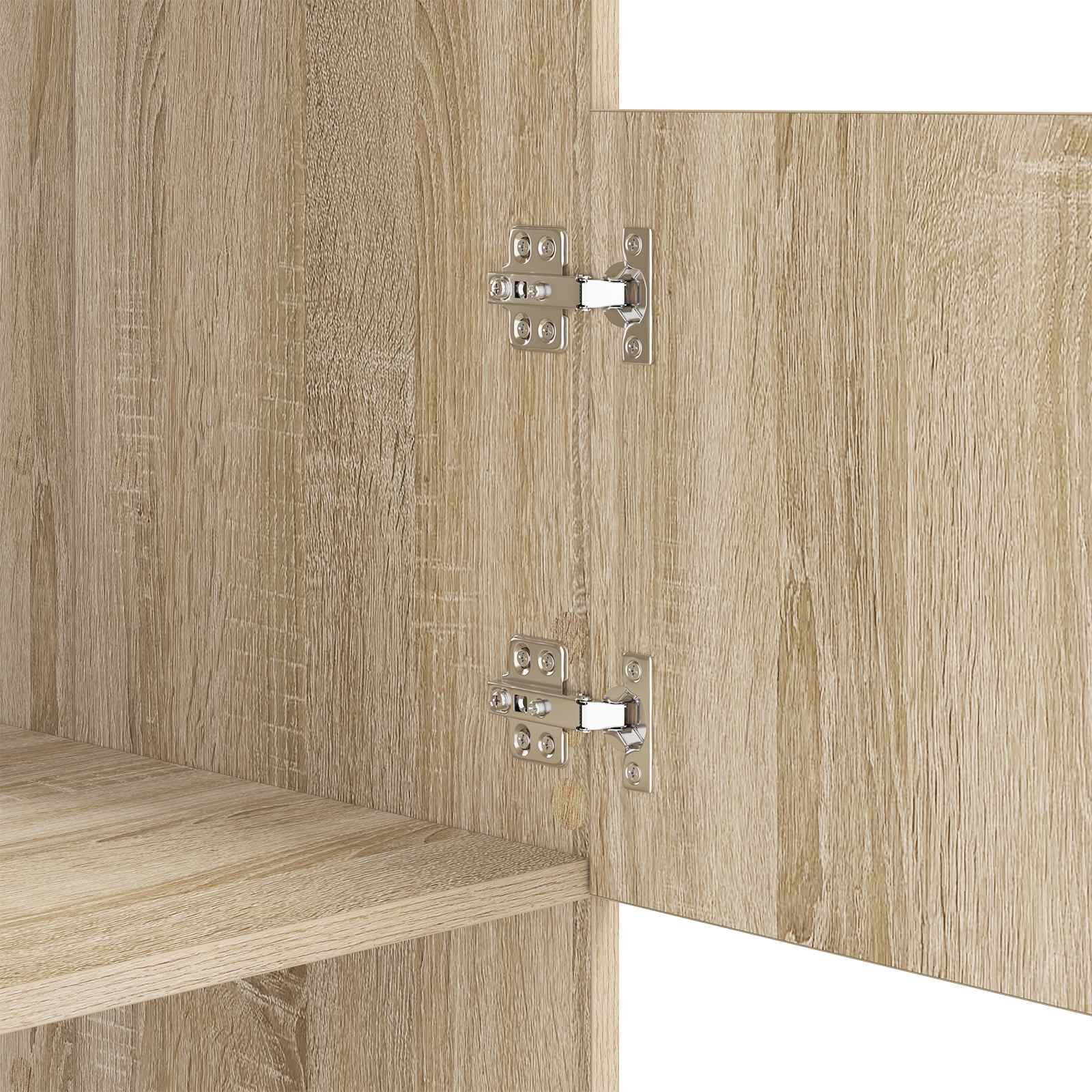 - Kestävät saranoidut ovet teknisestä puusta valmistetut ovet avautuvat ja sulkeutuvat vaivattomasti, mikä helpottaa pääsyä tavaroihin. Oven kestävä rakenne lisää kaapin pitkäikäisyyttä ja parantaa sen yleistä kestävyyttä.
