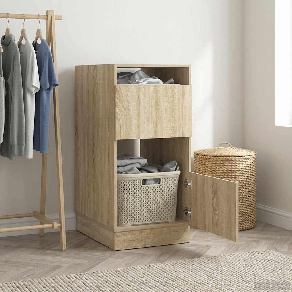 Tämä moderni pyykkikaappi yhdistää tyylin ja käytännöllisyyden. Sen suorakaiteinen muoto tuo ilmeeseen raikkautta, ja sileä pinta tekee siitä hieno valinta. Kestävä tekninen puu takaa pitkän käyttöiän ja viehättävän ulkonäön. Runsas säilytystila on täydellinen järjestystä rakastaville, jotka haluavat pitää kylpyhuoneensa siistinä.