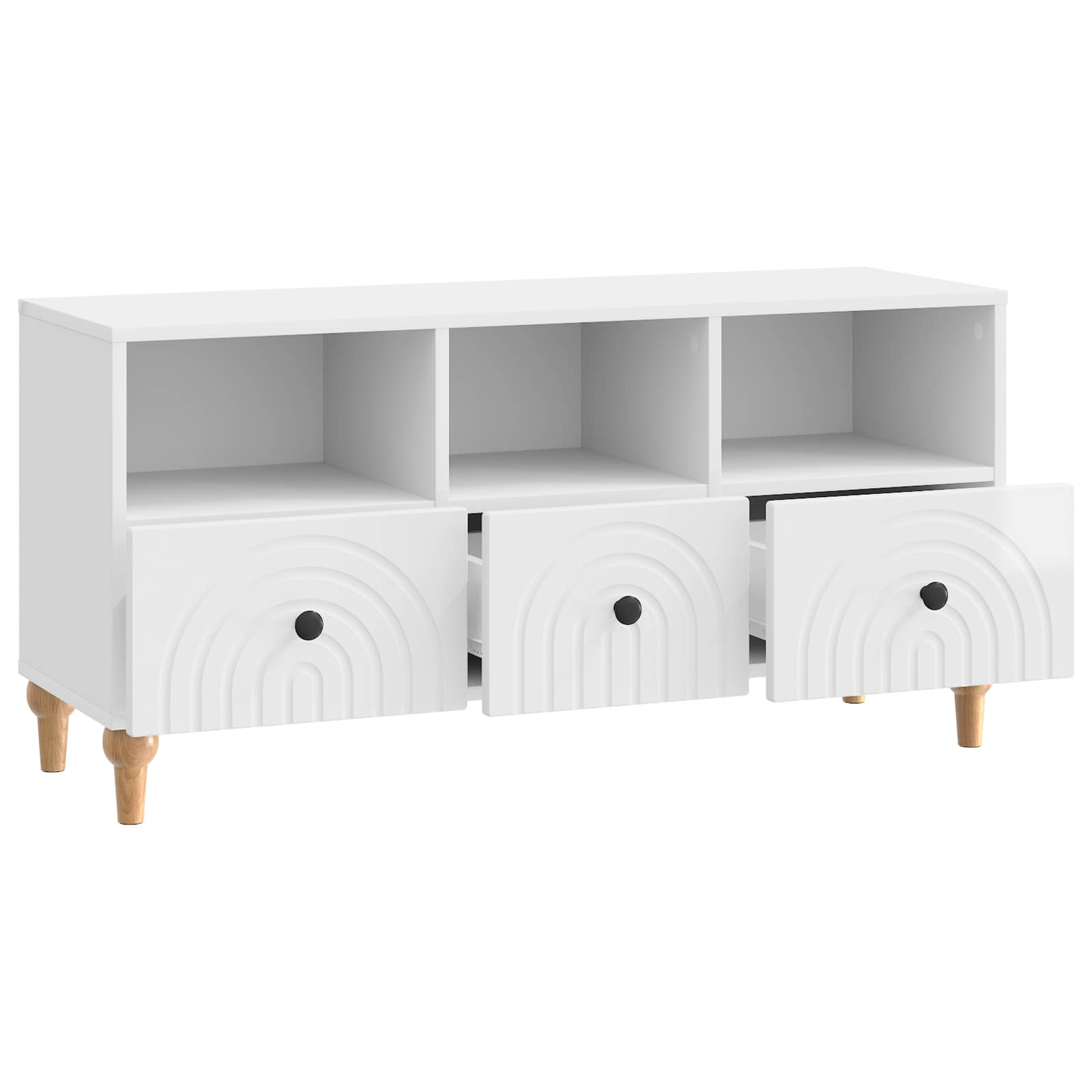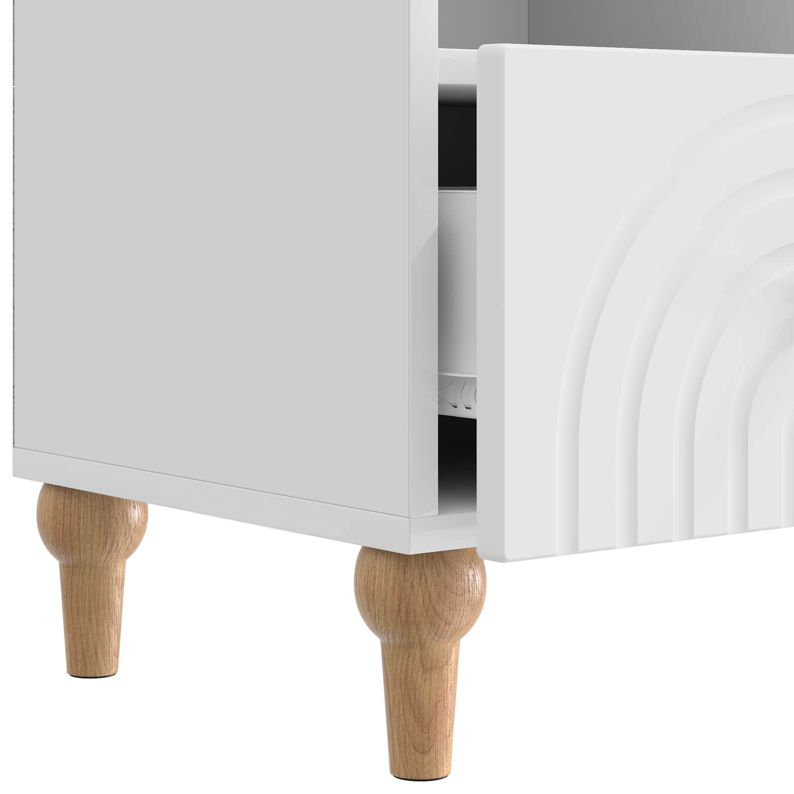 Tämä moderni TV-kaappi yhdistää tyylin ja käytännöllisyyden. Suorakaiteen muoto tuo kauniin ilmeen ja runsaasti säilytystilaa olohuoneeseen. Vaatimaton raidallinen reunus lisää yksinkertaista eleganssia, mikä tekee siitä täydellisen niille, jotka arvostavat modernia tyyliä. Kaappi toimii hyvin seinälle kiinnitetyn TV:n alla tai itsenäisenä yksikkönä, johon voi laittaa koristeita.