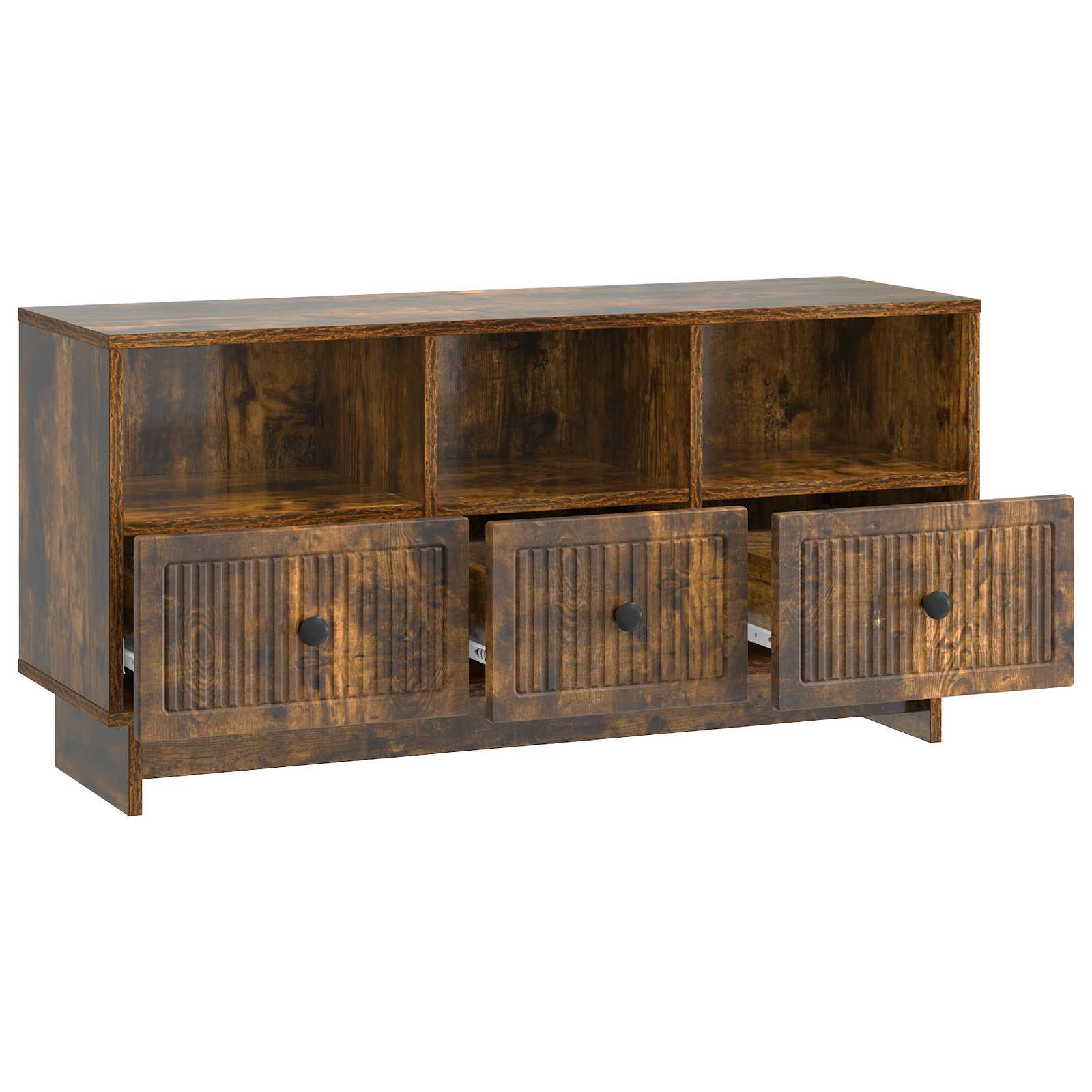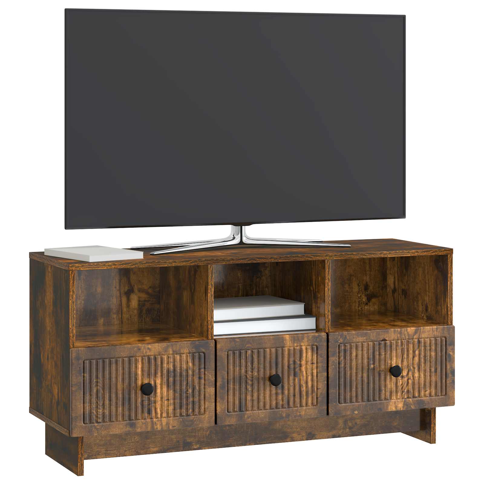 Tämä moderni TV-kaappi yhdistää vintage-tyylin ja modernin twistin, joten se on täydellinen valinta olohuoneeseesi. Suorakaiteen muotoinen rakenne teknisestä puusta tarjoaa sekä tyylikkään että käytännöllisen ratkaisun, jossa televisio ja muut mediavälineet ovat siististi näkyvillä. Monipuolinen tyyli sointuu moneen eri sisustukseen, joten tämä kaappi tuo eleganssia mihin tahansa viihdealueeseen.