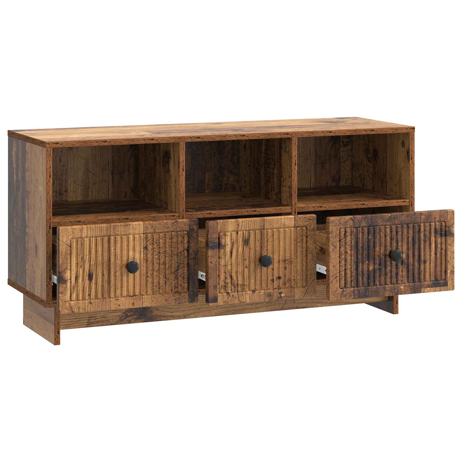 Tämä moderni TV-kaappi yhdistää vintage-tyylin ja modernin twistin, joten se on täydellinen valinta olohuoneeseesi. Suorakaiteen muotoinen rakenne teknisestä puusta tarjoaa sekä tyylikkään että käytännöllisen ratkaisun, jossa televisio ja muut mediavälineet ovat siististi näkyvillä. Monipuolinen tyyli sointuu moneen eri sisustukseen, joten tämä kaappi tuo eleganssia mihin tahansa viihdealueeseen.
