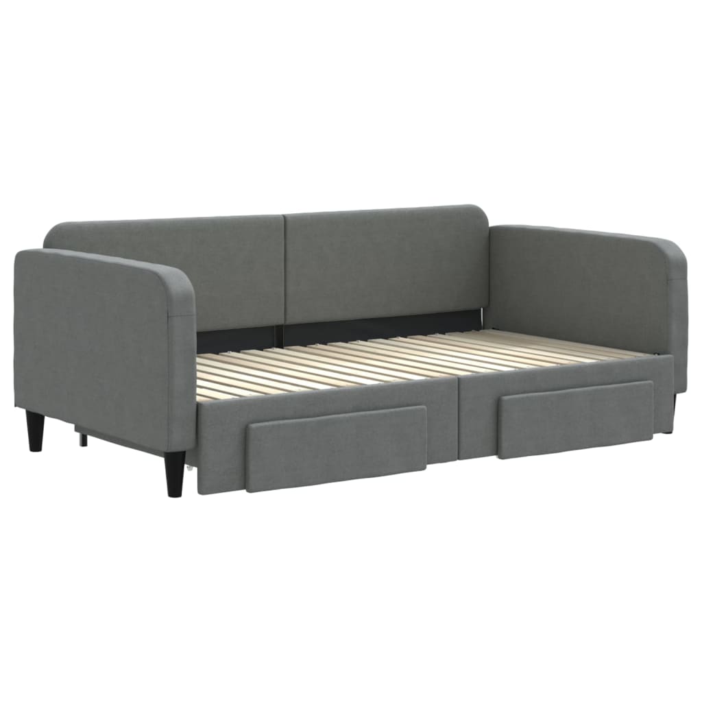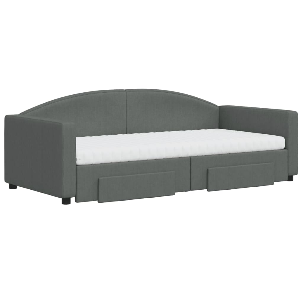 Vuodesohva rullilla ja laatikoilla t.harmaa 90×190 cm kangas